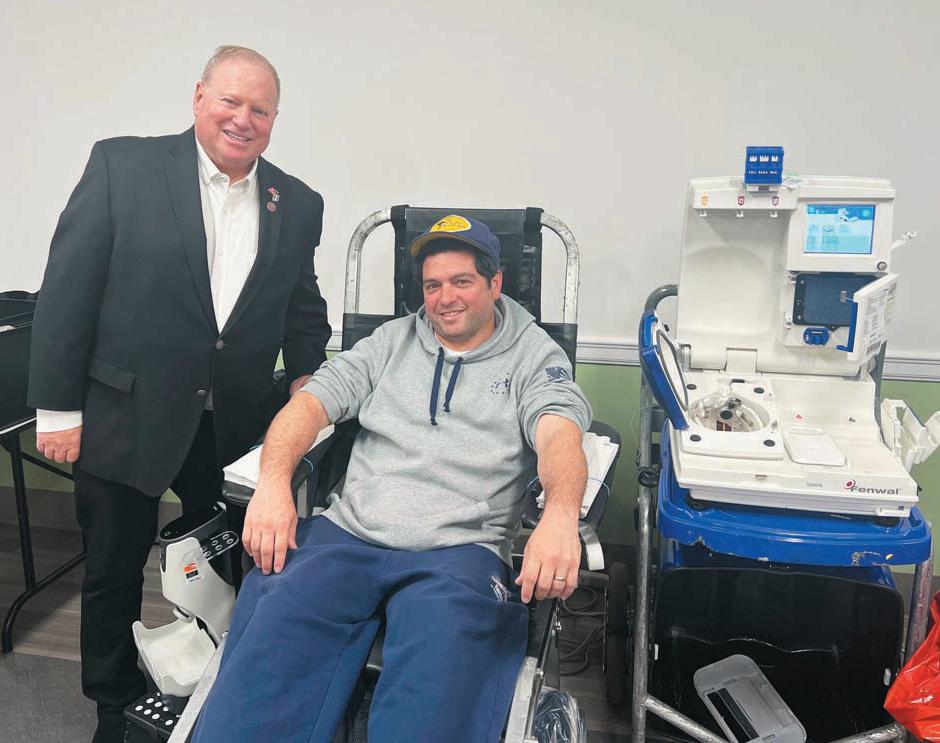 Nassau County Legislature Deputy Minority Leader Arnold W. Drucker (D –Plainview) with a donoar at the blood drive held on April 13 at Plainview OldBethpage Public Library
