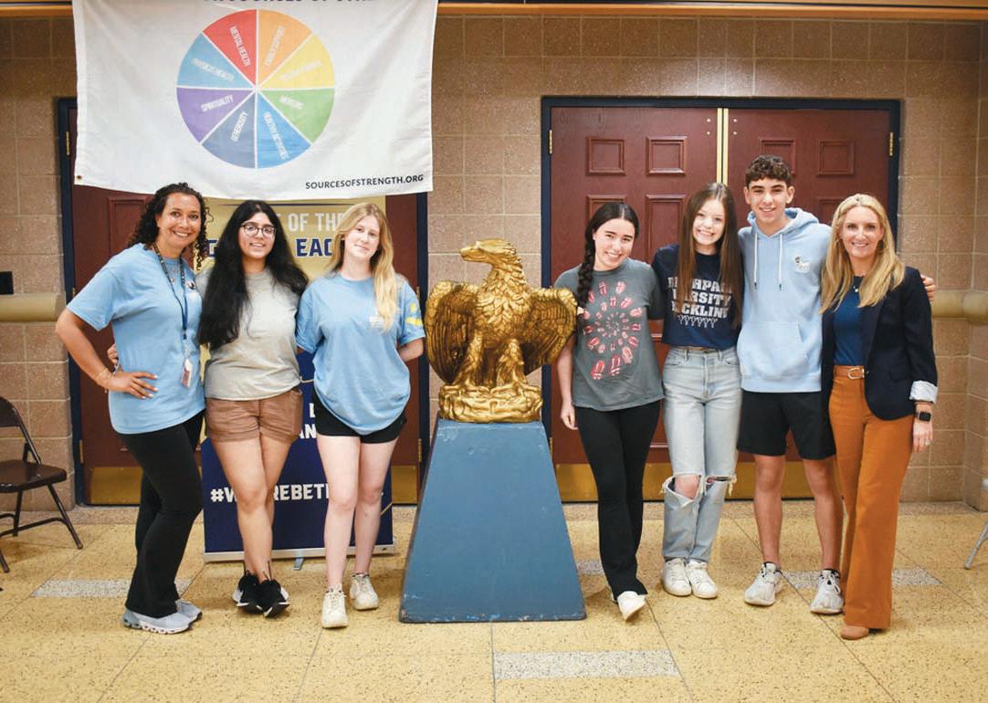 School social worker Sarah Glassman, students Devaanshi Kawatra, Lily Kovac, Emma Krittman, Abigail O’Hara, Zachary Fradella and Assistant Principal Charlotte Hirsch-Beckman