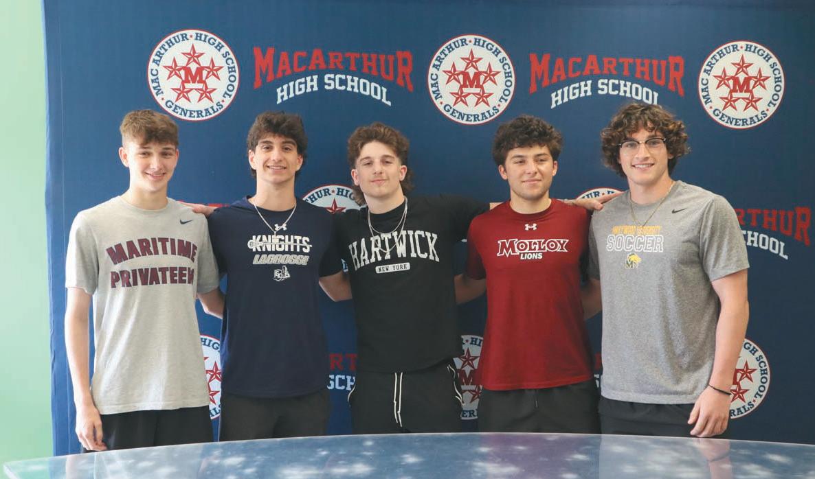 Five athletes from General Douglas MacArthur High School signed letters of intent to play at their future colleges and universities.