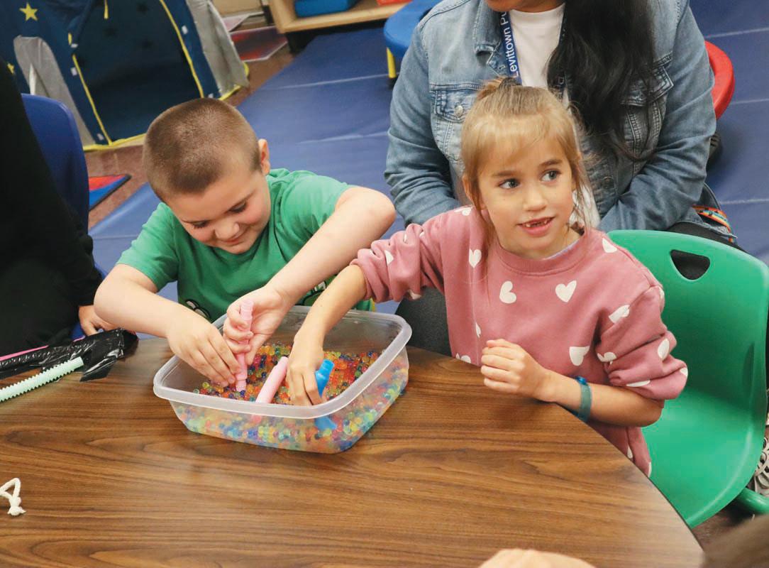 Lee Road Elementary School students Colin Terracciano and Emilia Lineman enjoyed using their senses to explore different materials and textures during sensory time on May 16.