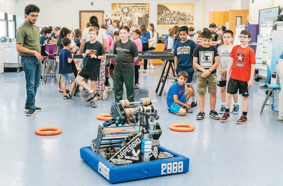 Across the hall, the STEM lab offered hands-on activities for elementary school students. A particular highlight was the resident robot, which captivated the younger students with a series of entertaining tricks, orchestrated by the high school robotics students.
