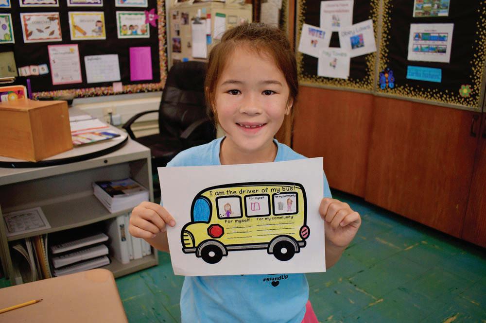 future” and “you are the driver of your own bus.” Each student created their own bus and drew a photo of an aca demic or social goal that they have for themselves. In addition, the students drew a photo of a goal that they have for themselves within the community such