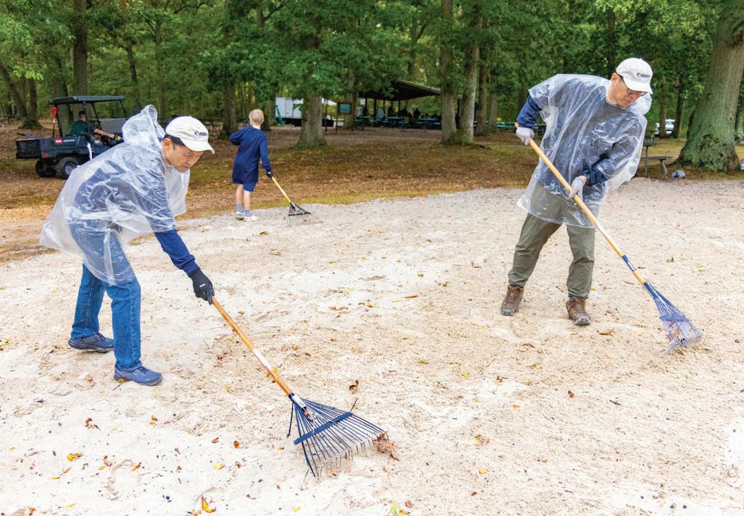 At Bethpage State Park, 89 employees and their family members volunteered to assist with a variety of tasks, including power washing and painting picnic tables, removing litter from trails, raking areas surrounding playgrounds, and adding rubber mulch to swing areas.