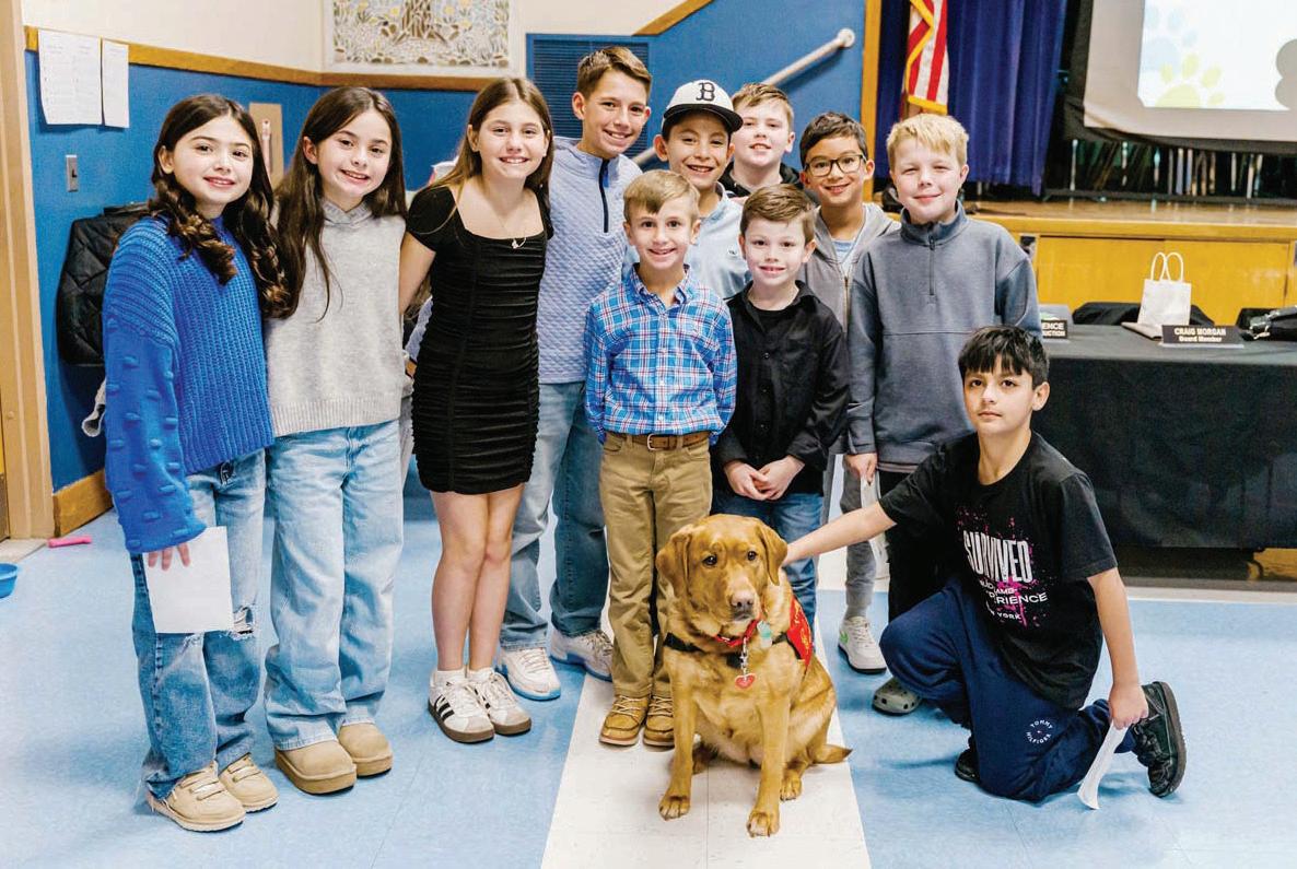 Charles Campagne Elementary School Principal Julianne Inghilterra and school psychologist Maureen Conklin then presented an overview of the school's therapy dog program, featuring Oakley, a fox red Labrador retriever born in 2022. Owned and trained by Conklin, Oakley is a certified therapy dog with READ certification and a Canine Good Citizen achievement. The presentation highlighted numer-
