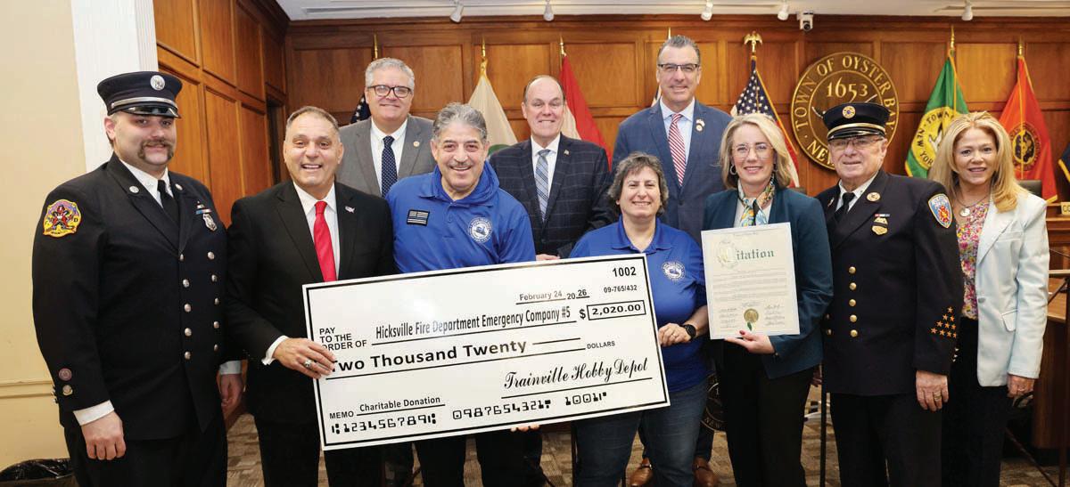 The Oyster Bay Town Board recently joined with Joel and Barbara Berse from Trainville Hobby Depot in Hicksville to present checks representing the funds raised from model train shows that benefitted Hicksville Fire Department Emergency Co. #5 and the Oyster Bay Railroad Museum. Supervisor Saladino and his colleagues on the Town Board recognized the support and generosity of Trainville Hobby Depot and spoke about the importance of the organization and how their support will benefit the fire service in Hicksville and allow the Museum to preserve the railroad heritage of Long Island for present and future generations.