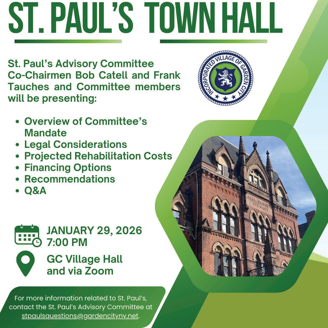 In last week’s GCNews, Jan 9th edition, Donald MacLeod submitted a fabulous letter that is must reading for all Garden City residents who will be voting in the March 18, 2026 annual election for our Village Board of Trustees. Mr. MacLeod has been a major spokesman for the FABGC Party for the last two years’ elections. (I have been a member of the movement to consider the disposition of the St. Paul’s Main Building and property.)