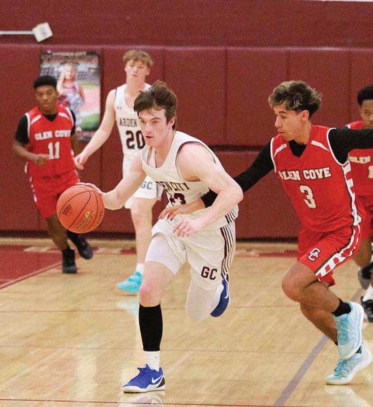 Garden City Boys Varsity Basketball has achieved significant success this season, winning 11 of their first 13 games and currently holding a 6-0 league record. They boys are in first place in league play. See pages 58-59 See page 7