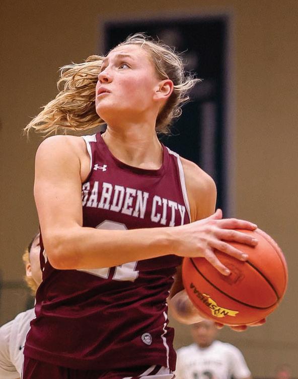 The Garden City Girls Varsity Basketball team made history this season, securing their first postseason playoff victories since the 2012–2013 campaign. The team finished the season with a remarkable 20-3 record, including a perfect 14-0 mark in conference play. See page 62