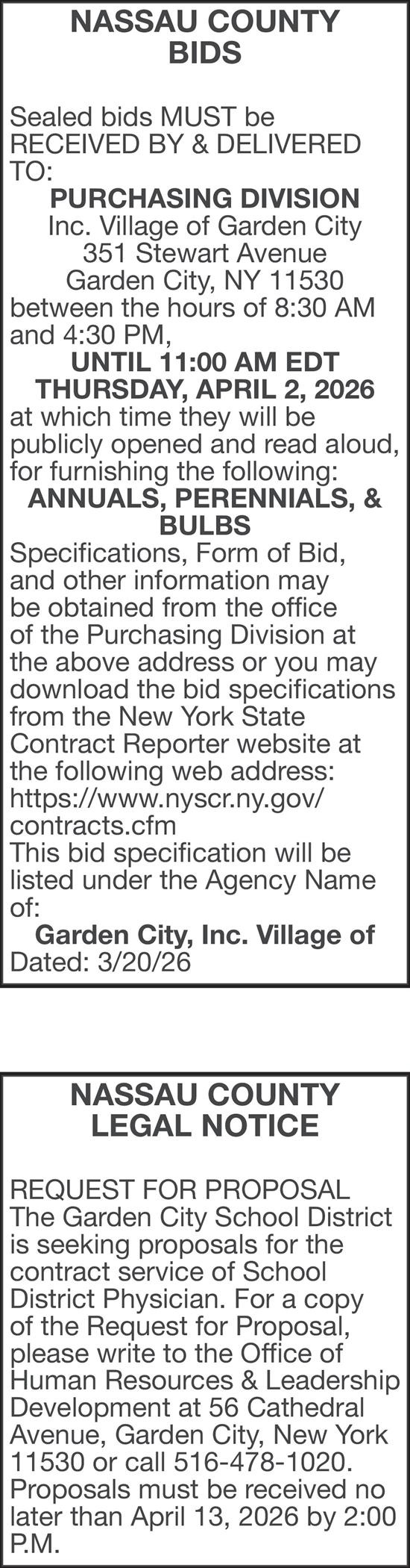 At its March 5 meeting, the Village Board of Trustees authorized the municipality to apply for fiscal year 2026–2027 federal Community Project grants. The applications include $2.5 million for the Department of Public Works and Water Department’s lead water service line identification and replacement project; $750,000 to construct the GCFD fire training center; and $1.659 million for renovation and construction work to improve the Garden City Public Library’s lower level.
