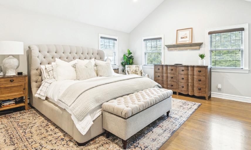 A primary retreat with spa-level marble bath & dual walk-ins.