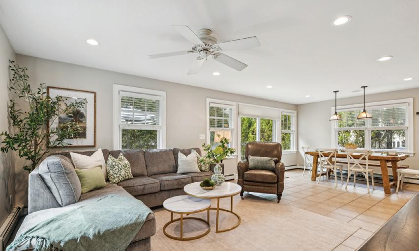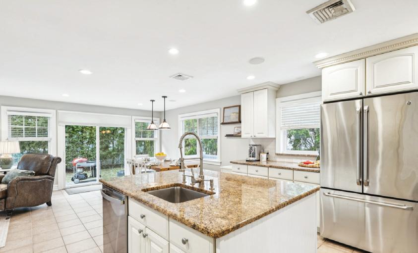 Sun-filled layout with a bright eat-in kitchen featuring granite countertops, flowing seamlessly into a warm and inviting family room.