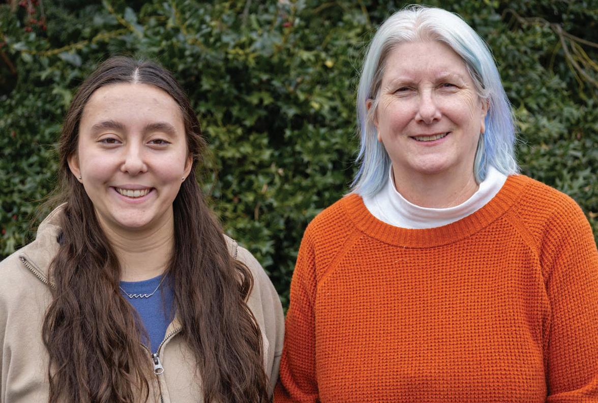 Rachel Luttrell, Class of 2026 (left), and High School science teacher Carolyn Ver Pault (right) at The Waldorf School of Garden City. Luttrell received a National Honor Society Student Service Grant from NASSP to restore the campus pond wall, while Ver Pault secured a partnership with ReWild Long Island to establish a native plant garden on campus.