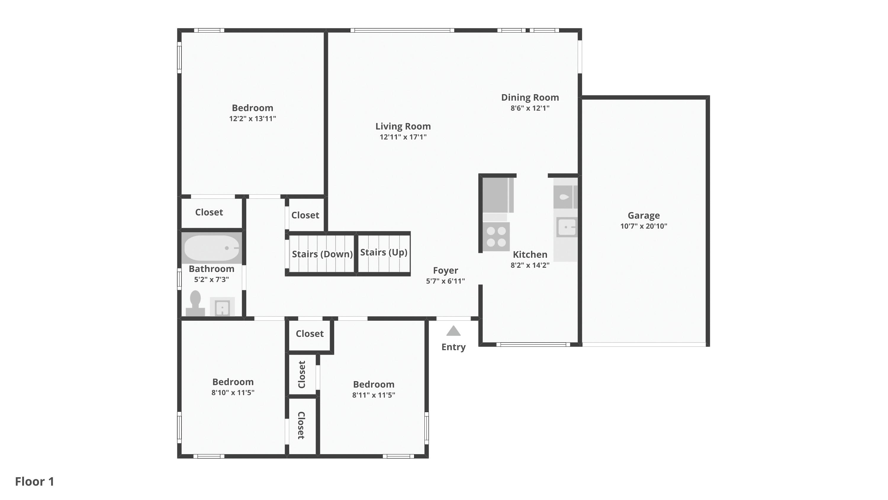 3 bedrooms, 2 full baths, 1 half bath