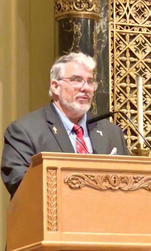 Grand Knight Joseph Levano’s address after each Mass brought loud applause from parishioners.