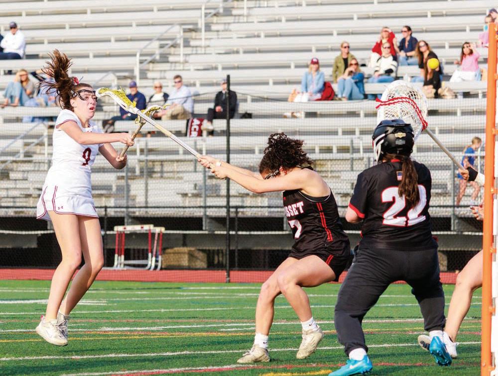 The week kicked off on Tuesday with a thrilling comeback victory over Wantagh. Tori Ottomanelli opened the scoring for the Trojans off a pass from Averie Smith, but Wantagh answered with five straight goals. Just before halftime, Garden City shifted the momentum. Kim Colucci scored with 11.7 seconds left in the second quarter, and on her ensuing draw win, Kathryn Monaco sprinted downfield to score at the buzzer— cutting the deficit to 5–3.