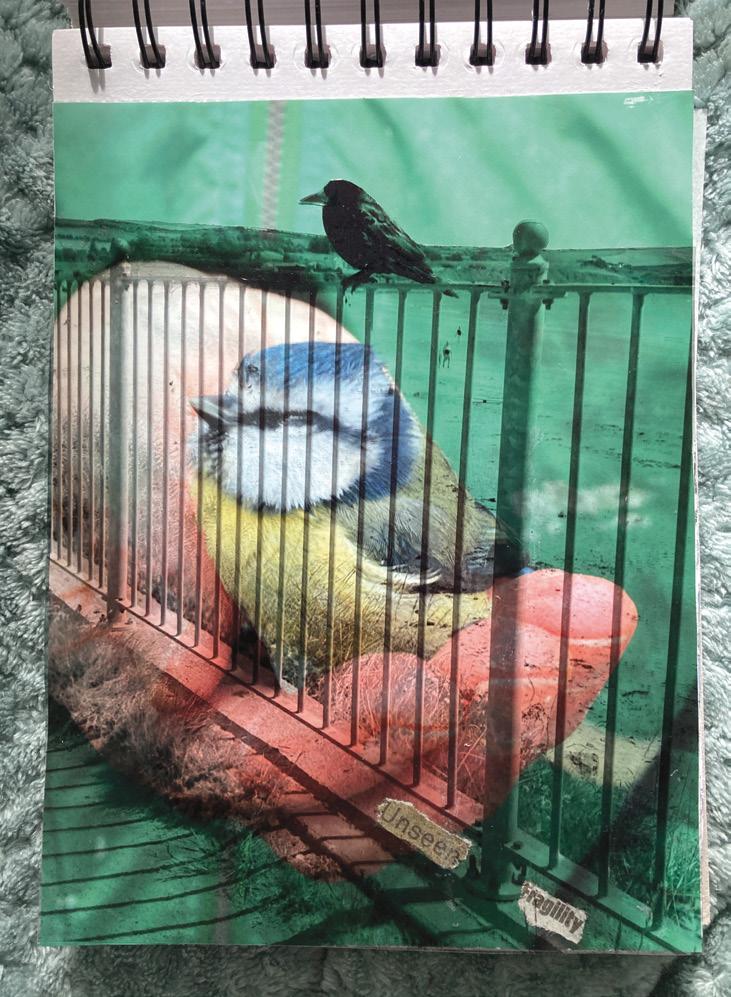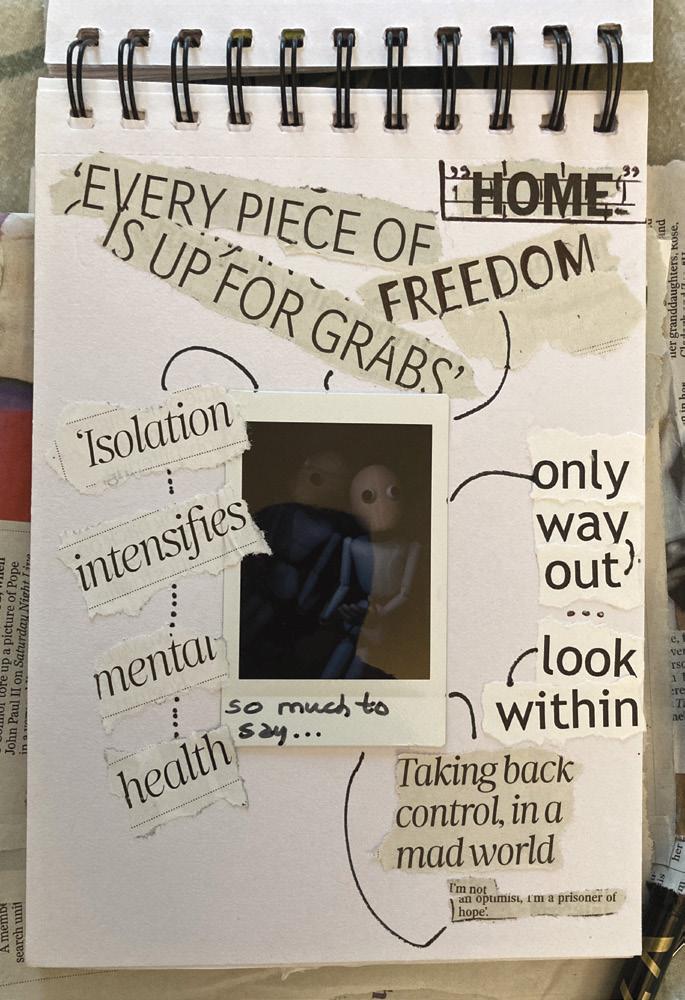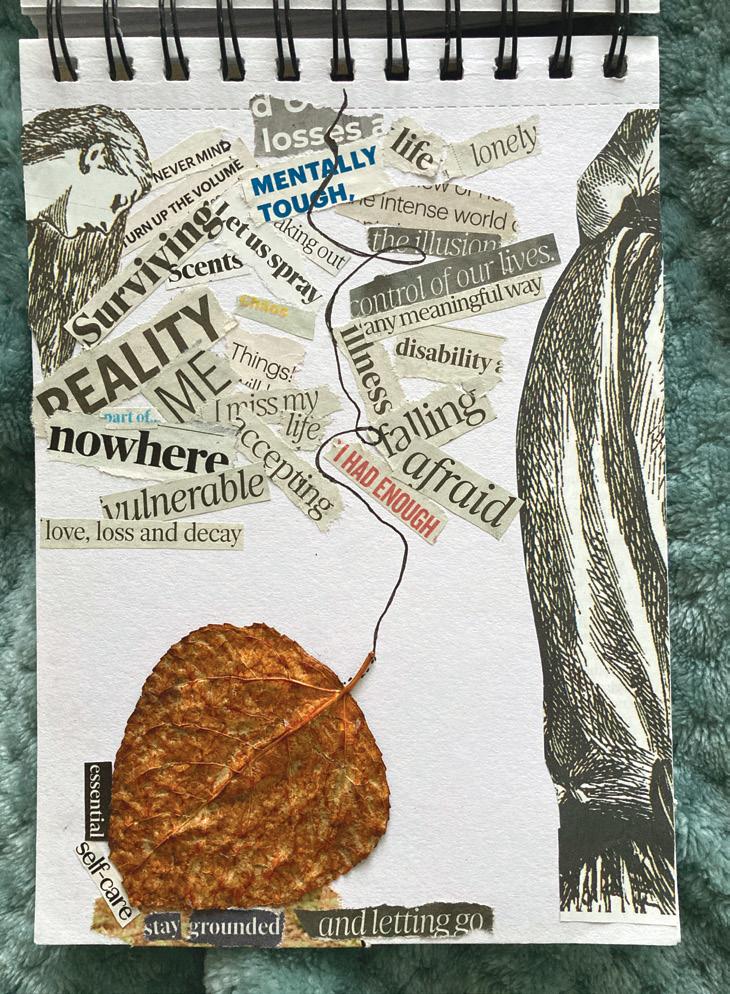 Collages are an artistic vehicle to represent her reality. Bold statements are peppered throughout this book. Word choices, together with the images, act as an empowering tool to fully convey the complexities of an individual with Severe ME existing in care. The collages are a fascinating mix of observations, psychologies, exploitations and complications. The messages, both hidden and unhidden, within the collages tell an important story.