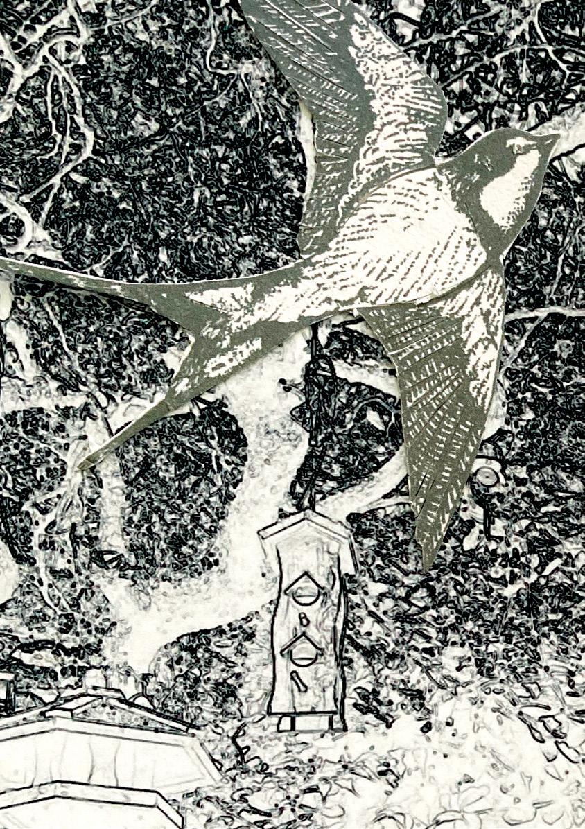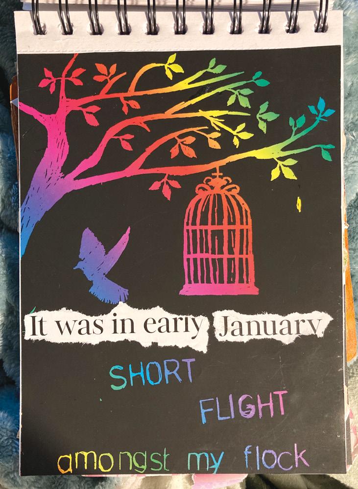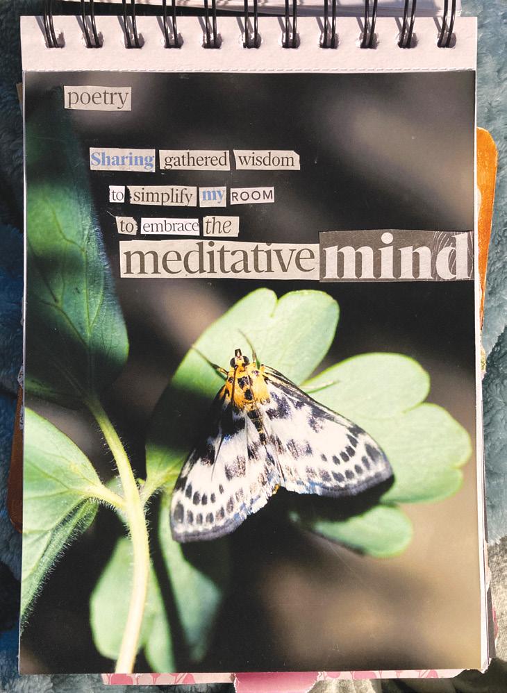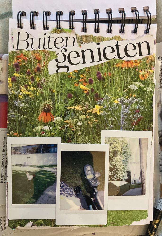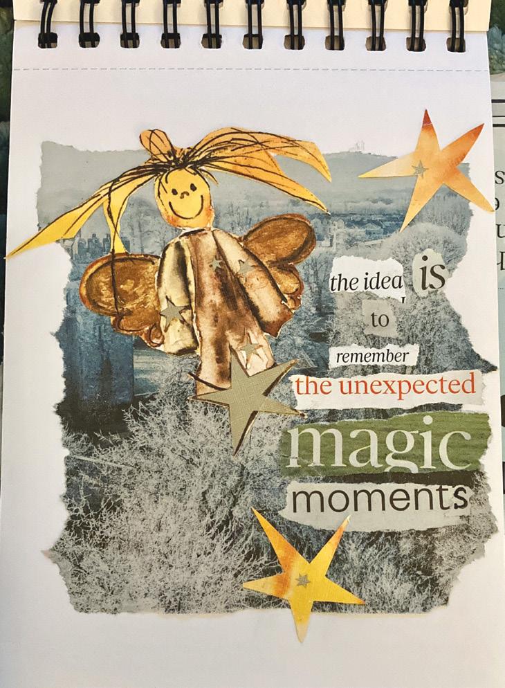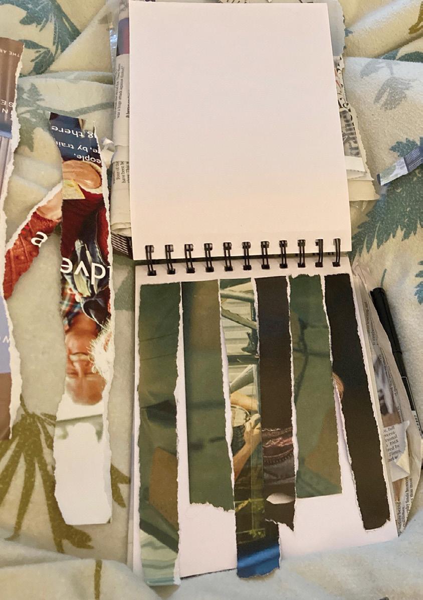 Corina addresses evergreen themes here: the idea of home, illness, ageing / loss of independence. Importantly, it highlights the value of a creative practice for both in-the-moment enjoyment and selfexpression. Corina draws us into a pattern and rhythm as we moving through from one image to the next, searching out the words in each collage – unpacking her moving observations of the life she lives.