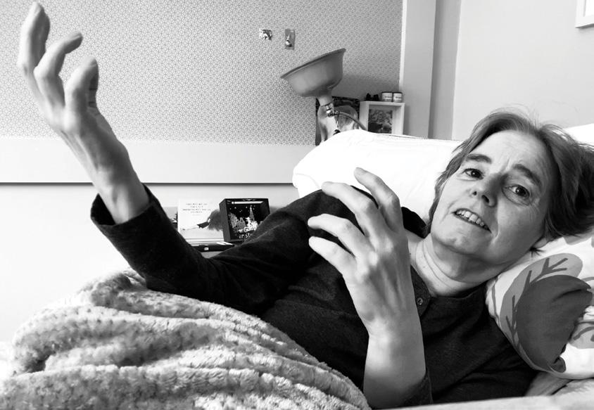 Image of Corina in bed by Caroline Schofield, April 2022.