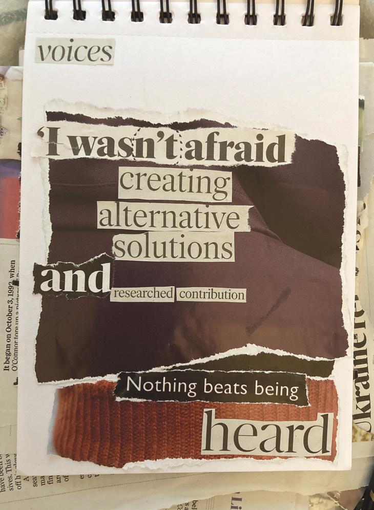 There were many difficult conversations and at times Corina found the process hard. The artwork she was making brought up the sadness of her loss of home and at one point she thought she should stop, but the collages and ideas couldn’t be contained and they needed to be voiced.