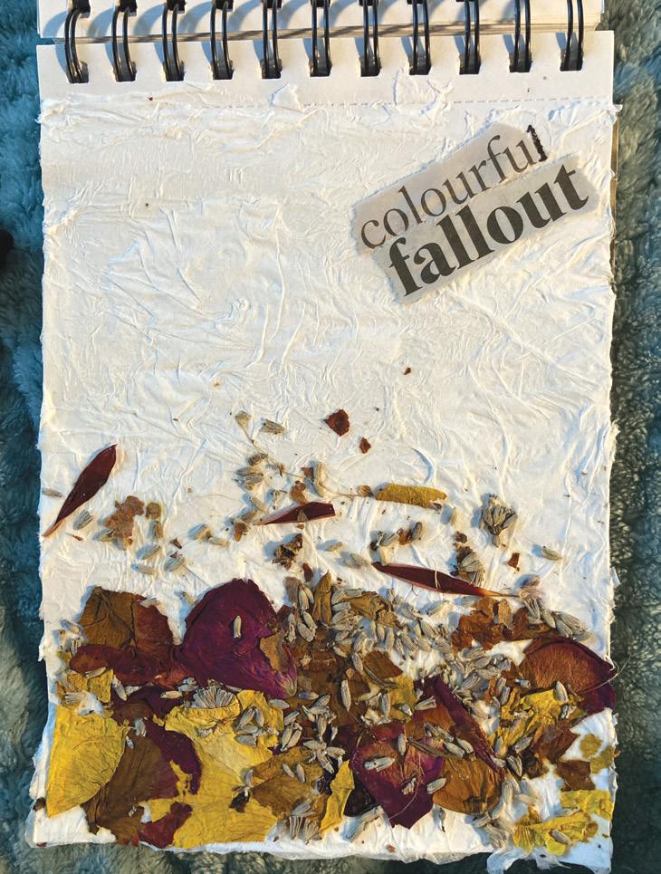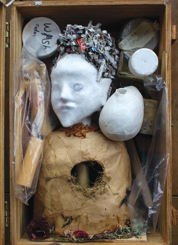 I did touch the gloriously tactile wall-paper-paste to fill the base with petals, leaves, feathers. My hands later unhappy with the experience. A bird as heart: a necklace presented by my Finish Art students just months before I became ill.