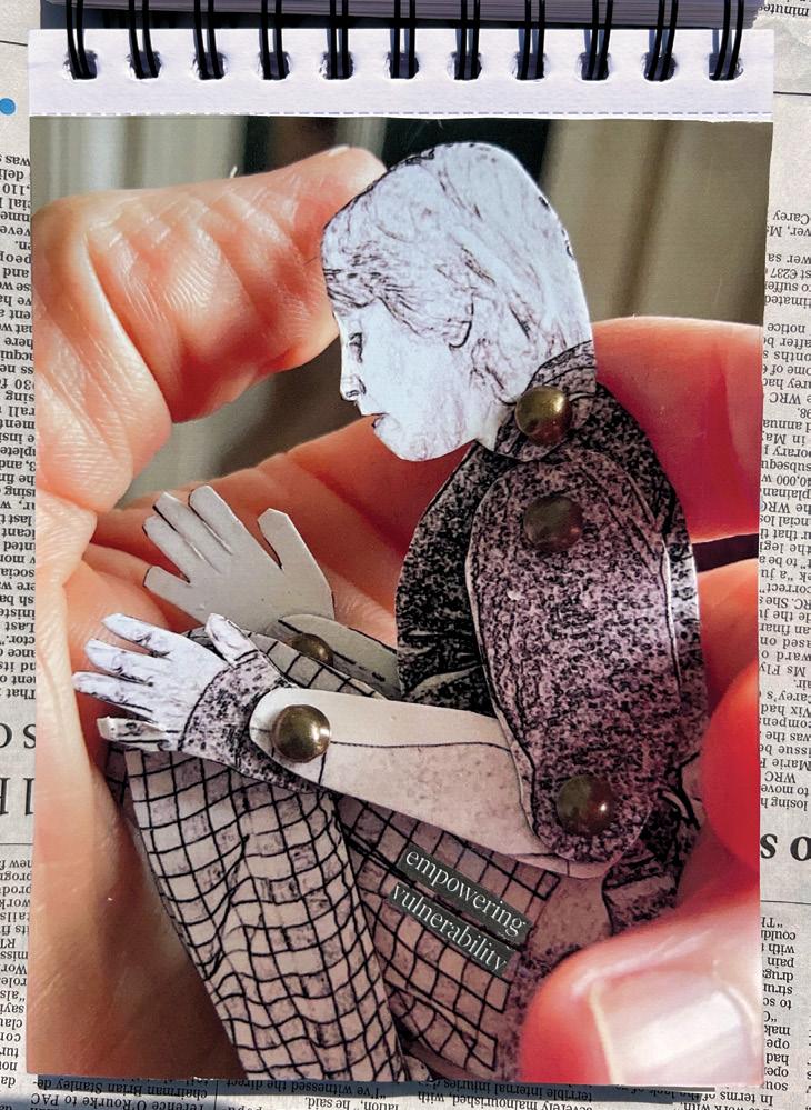 Having the opportunity to observe Corina’s work has been incredibly inspiring. Her art, especially the collages, beautifully express deep emotions and covers important themes. Each piece Corina designs is a thoughtful blend of images and materials, creating a narrative that reflects her inner world and experiences.