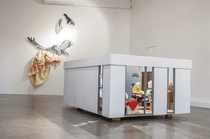 When viewers of the exhibition ‘I brought the dream of flying’ looked at the installation of the room Corina lives in 24/7, I watched the emotion on their faces, the faces of the staff, families of loved ones who were in nursing homes or those who might need these facilities in the future. The emotion from the room ebbed through everyone who stopped and looked – who understood the enormity of home and the displacement of those who cannot be minded in their own home.
