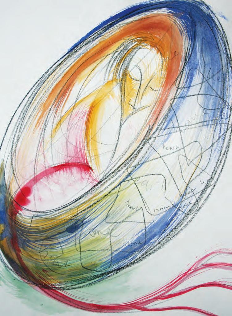 During the first fourteen years of illness, the focus of her art was that of the life-cycle of a bird. Starting life afresh as the embryo in an egg; growing into an adult bird. After reaching a new level of acceptance with her circumstances, her artwork changed to exploring the experience of being more grounded and rooted. Perhaps her desire to fly was also a flying away from the reality of pain and isolation? This acceptance was also the seed for Corina to attend a year of Disability Studies at UCC in 2012/13. This course greatly influenced her focus in life and art, and was the start of the I nto the Light project.