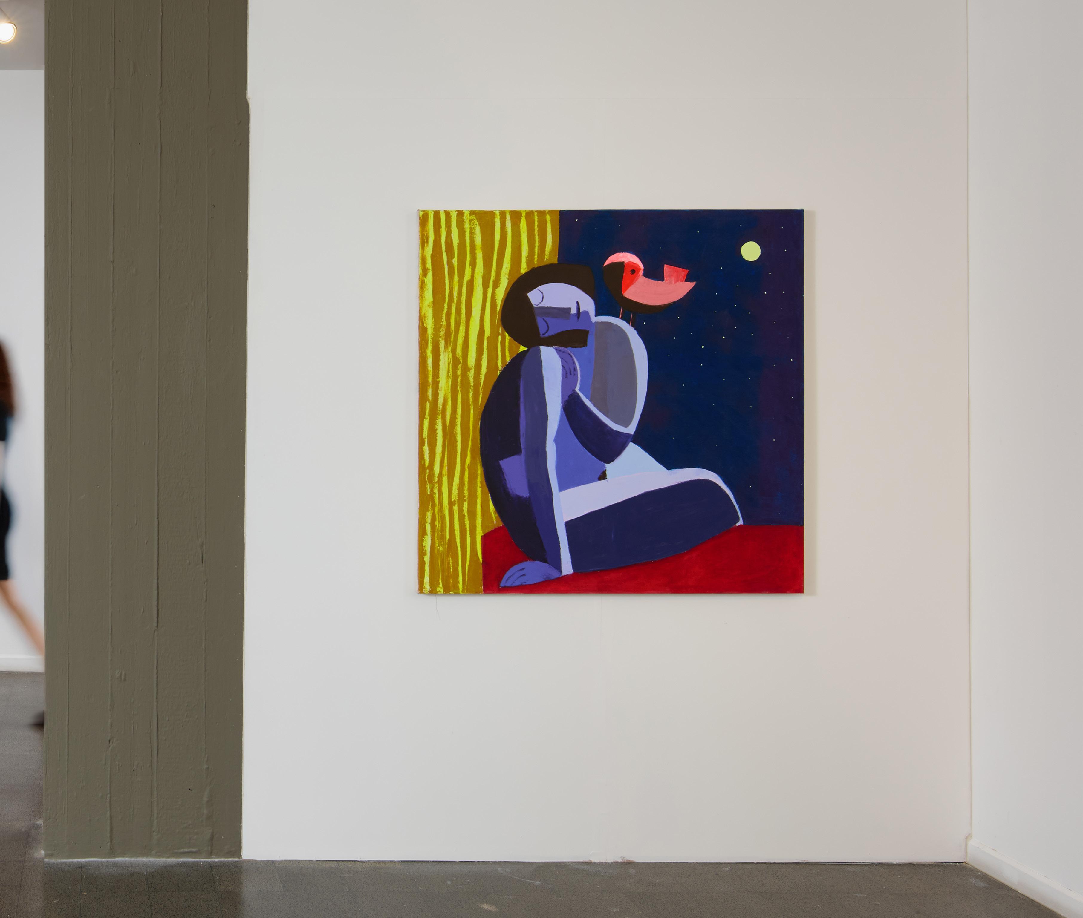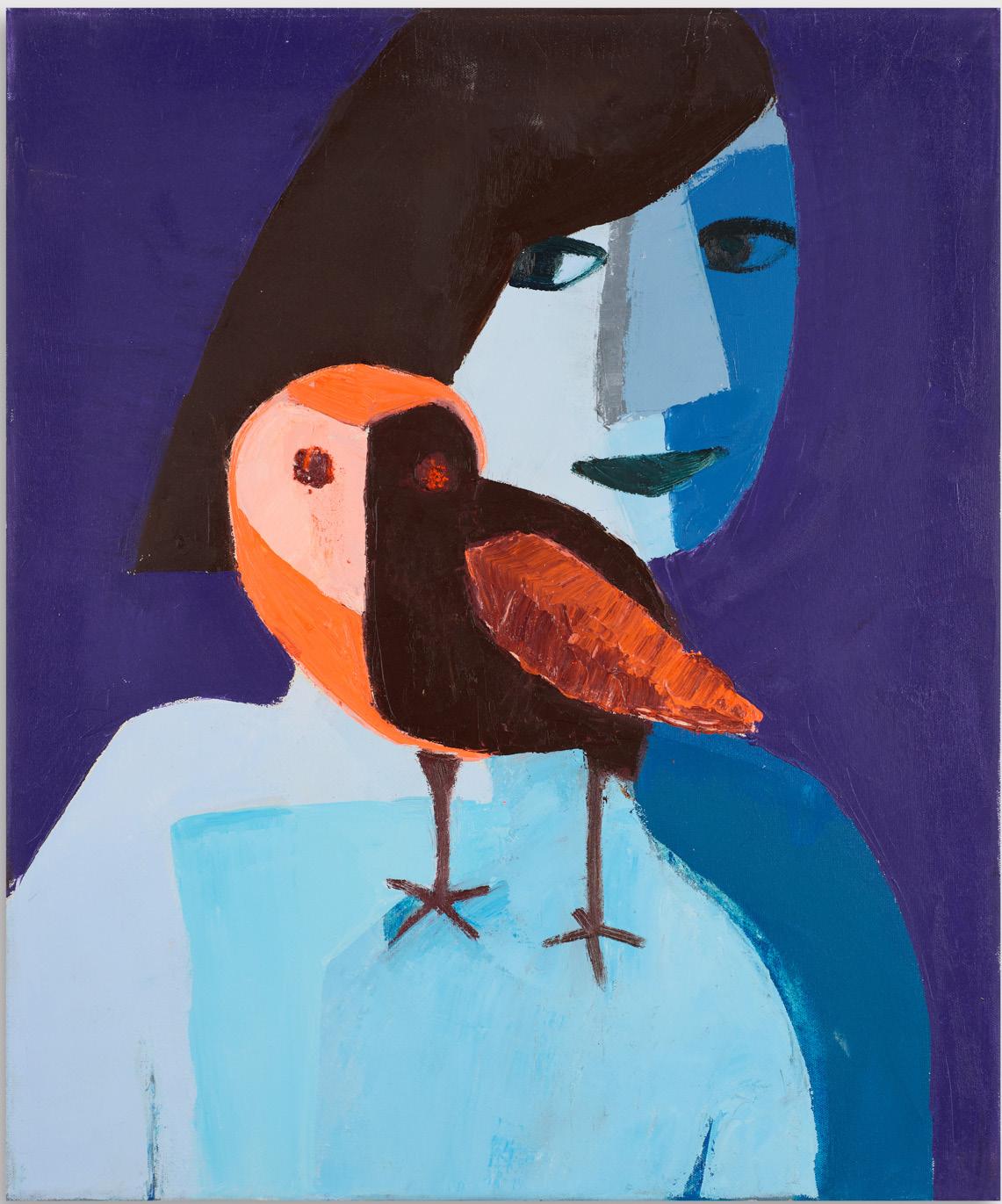 There are not too many things within these spaces; the items do not touch each other and each detail has its own place. The elements that appear alongside the figures, like celestial bodies, fruit, and a skull, imbue the painting with a subtle metaphysical air. The appearance of the bird in some of the paintings suggests a mystical link between the woman and the animal and alludes to the biblical myth of Lilith . The mythology and mysticism that permeate the paintings create a sense of a fictional plot or perhaps a moment from a complete story.