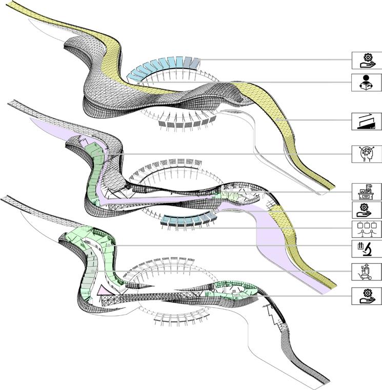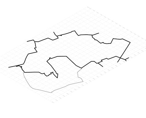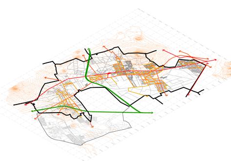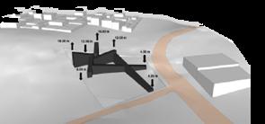 Colocación de volúmenes restantes y alzado conforme a alturas mínimas. Composición con base en ejes secundarios y respetando la configuración espacial.