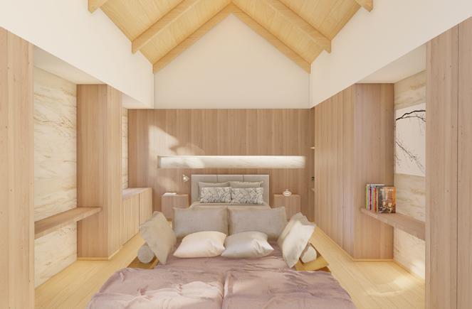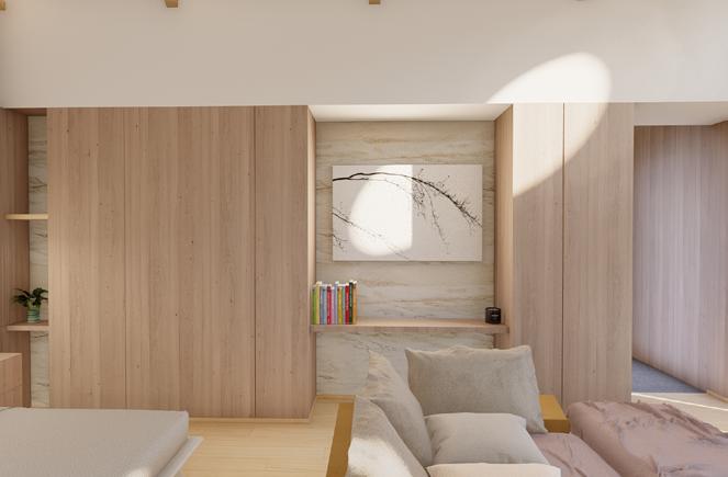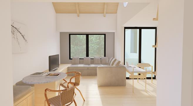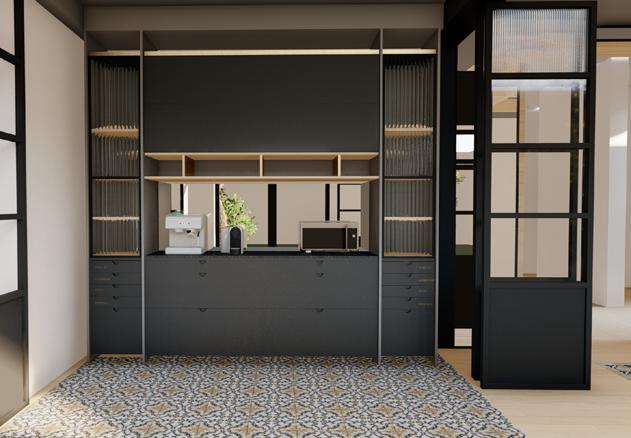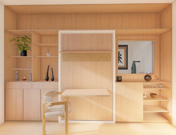 Vista con cama extraíble guardada Bar - Propuesta 01 con Booth y mesa de juegos Mueble Trinchador - Antecomedor Vista con cama extraíble Bar - 02Intervencion de Laguna de Chalco
