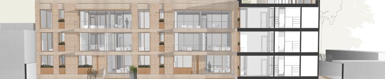 Alzado de volúmen de habitaciones con base en módulo estructural de 6.00 x 2.00 (considerando 2 crujías encontradas con pasillo en medio