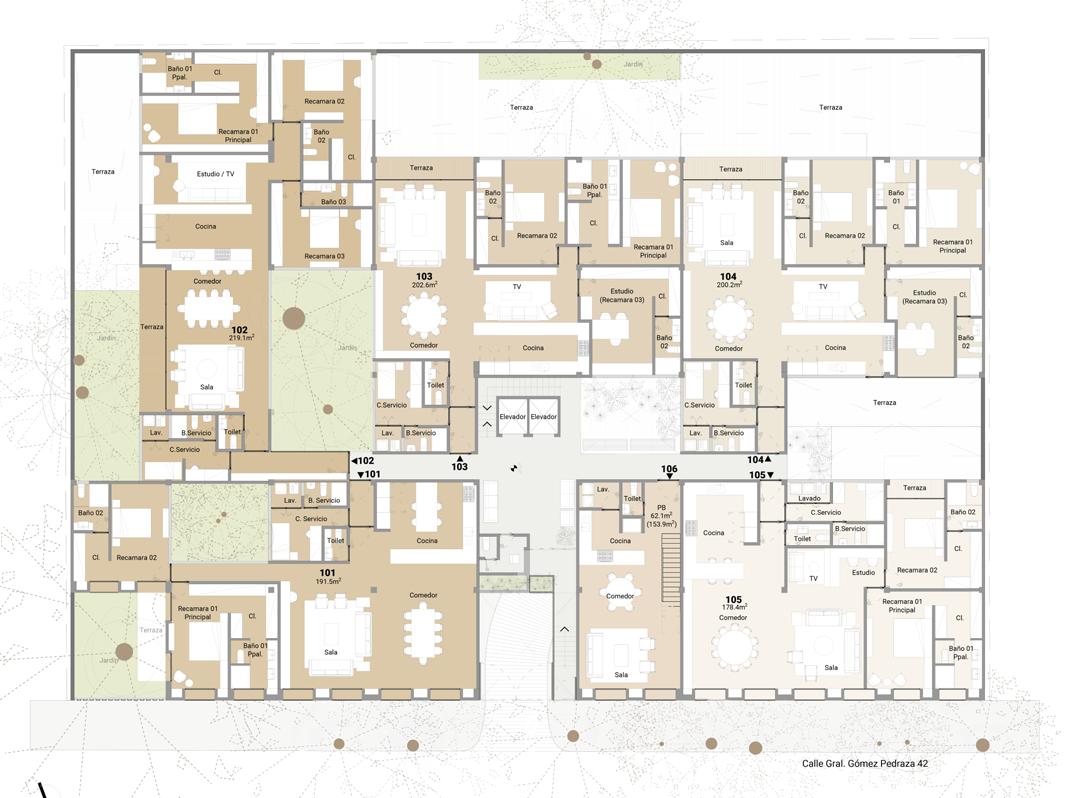 104 200.2 m2 105 178.4 m2 106 153.9 m2