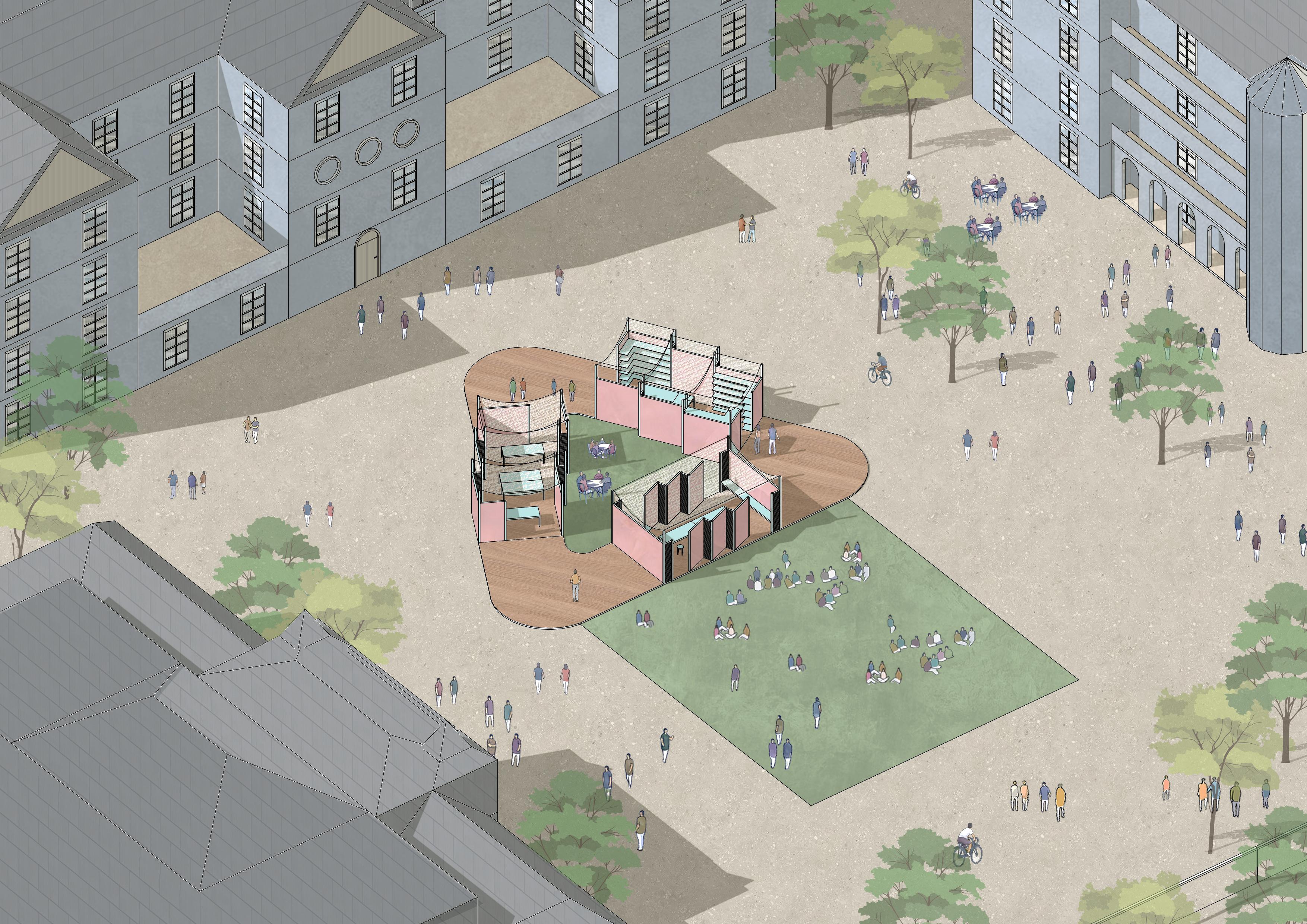 Collage Square And Workshop Axonometric View