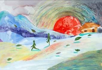 11. Mountains and River, Watercolour painting, 26× 38cm
