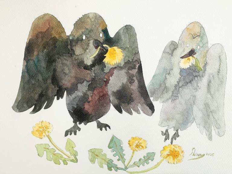 5. Birds: Celebrate with Friends Watercolor and ink on paper, 2024 22× 30cm