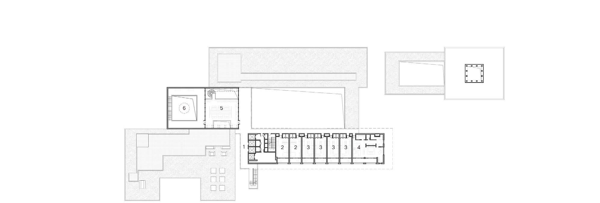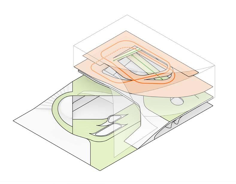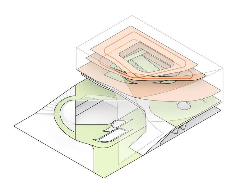 Five abstracted archetypes are embodied along the circulation, leading to fine adjustments of building volumes.