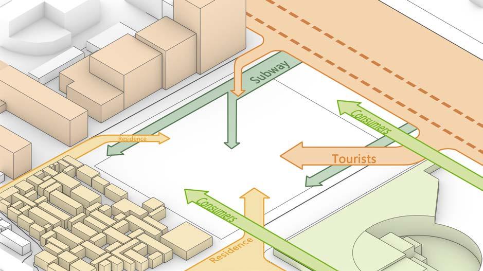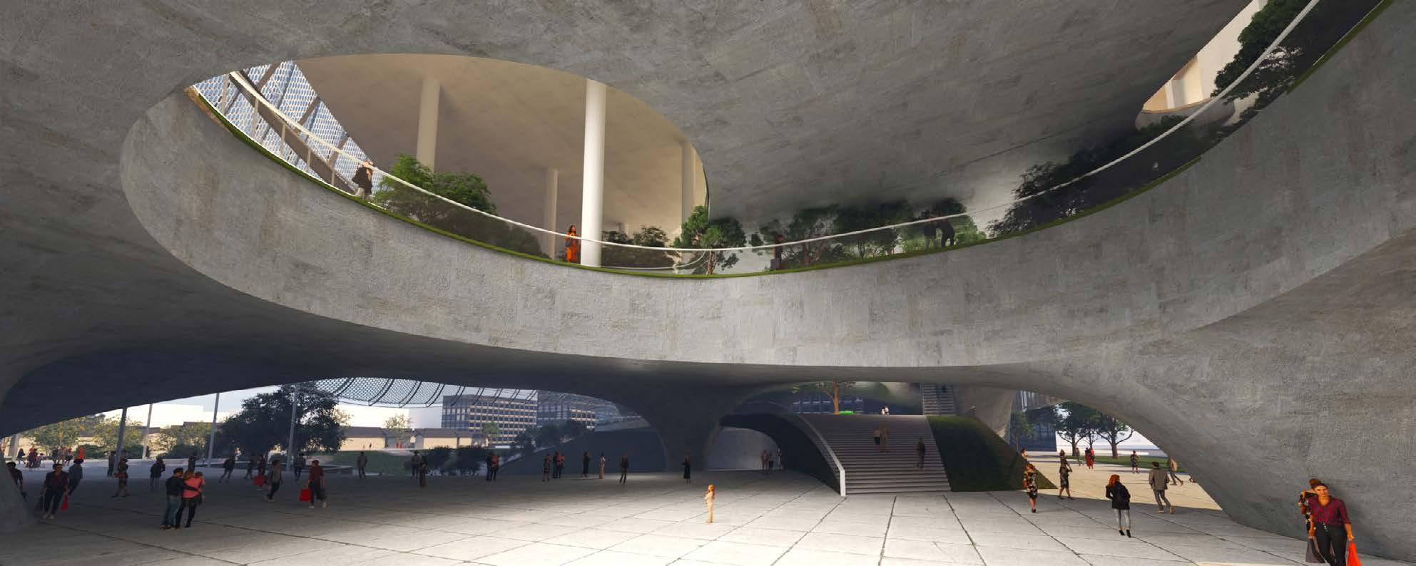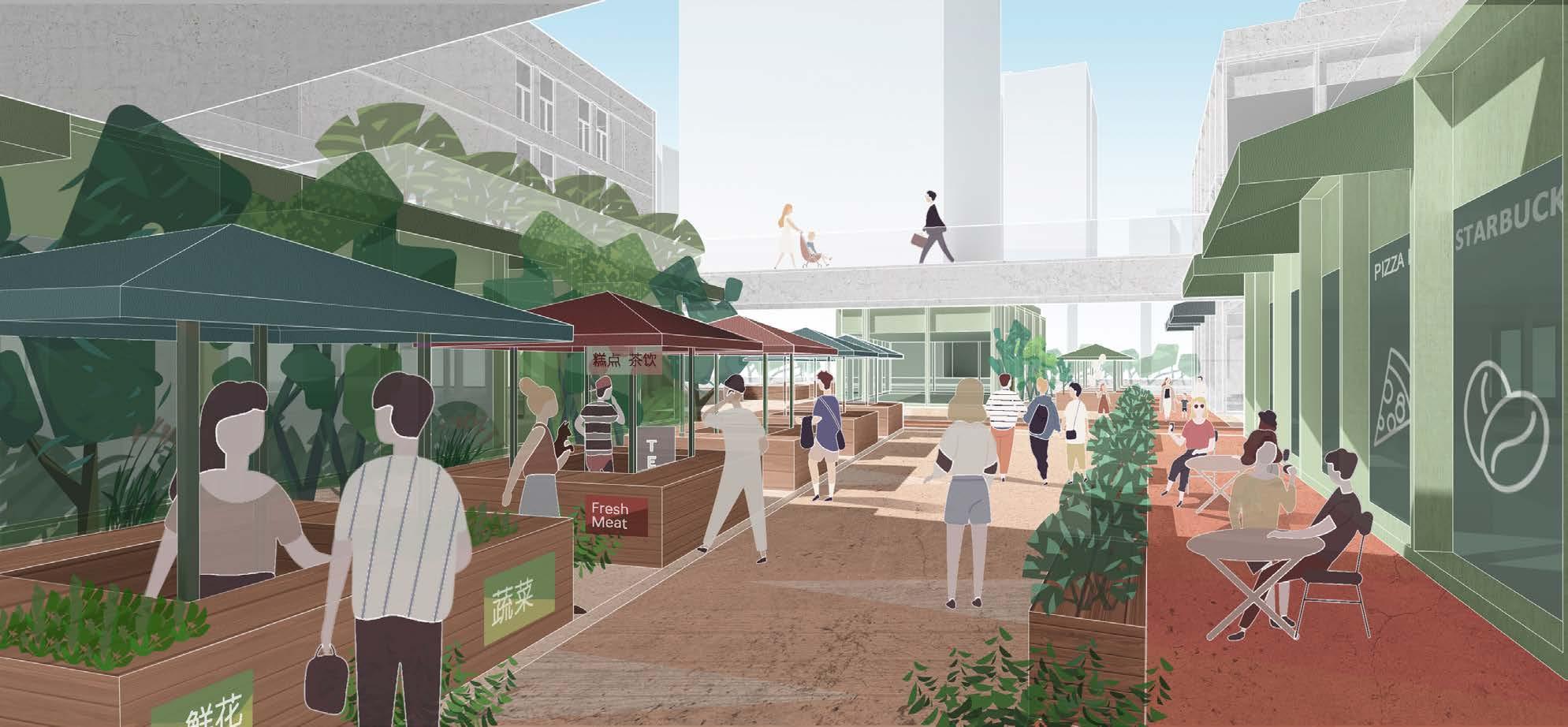 The GREEN route of life gathers people from the public area of parks, subway, and streets, bringing landscape and social activities into the building. It connects public spaces scattered inside the building as well.