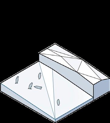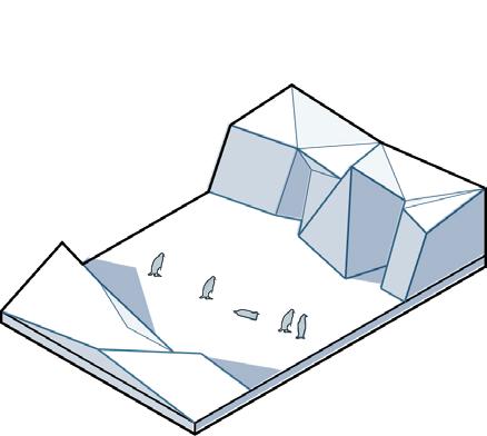 A tension between penguins and the nature is manifested. The museum is co-shaped by morphology of icebergs and the narrative circulation.