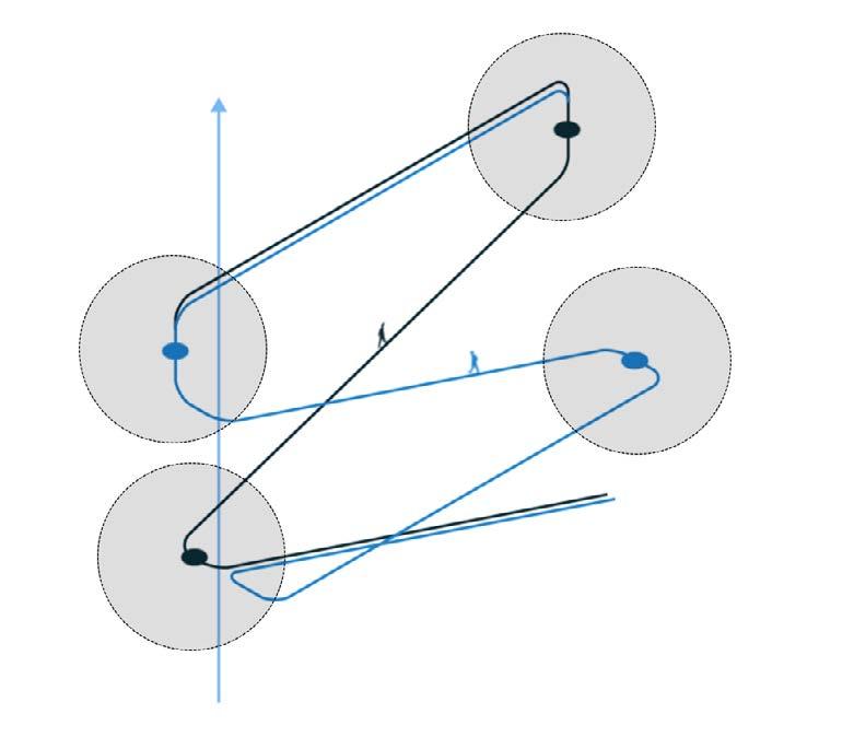 Visual connections are correspondent to the day-night cycles in the march of penguins. Locations representing events during polar days have broad horizons.