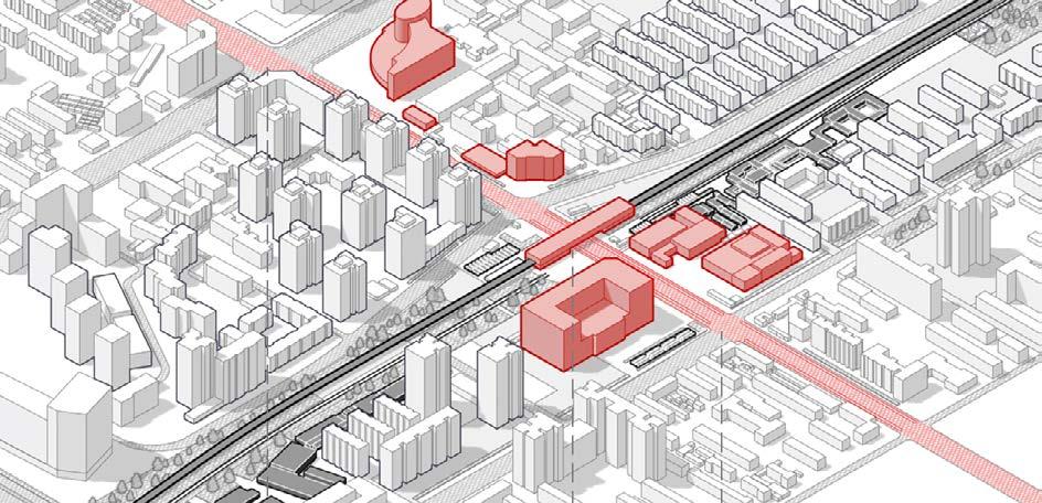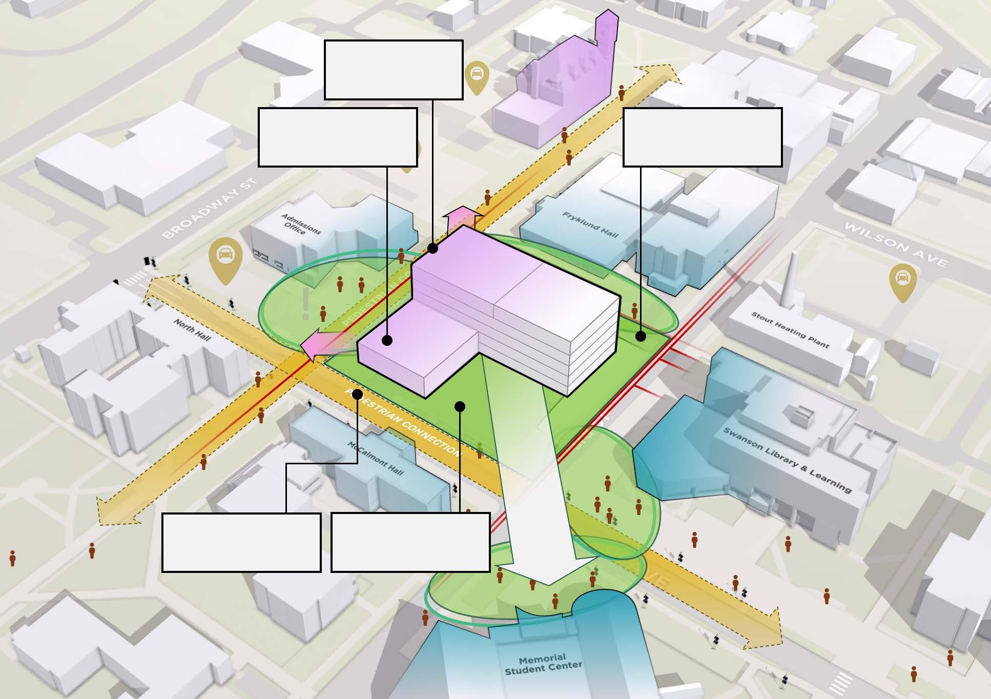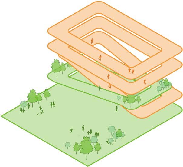 footprint at lower levels. Smaller height closer to campus context.