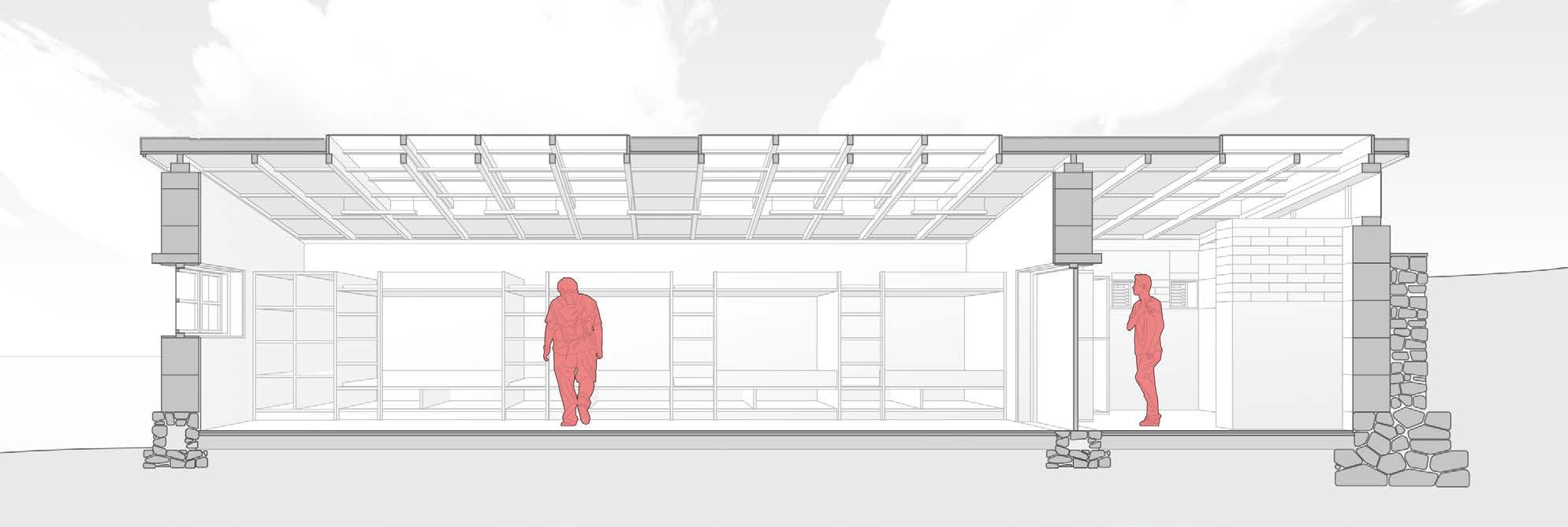 In Andes Mountains in Peru, a picturesque hiking route extends over 70 km along the Qhapac Ñan, ancient Inca trial.However, due to the lack of infrastructures, the route was only suitable for heavy backpacking. To promote local sustainable tourism, this proposal developed a system of shelters which will create a more inclusive hiking trail along the Qhapac Ñan.