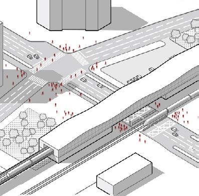 → Shape of circulations are adjusted to embody public spaces around them.