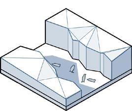 Accumulated snow and melting of ice shape a soft form. The contrast between transparent ice and white snow cap inspires the facade design.