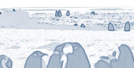 Female penguins separate from thier parteners to forage. This space stands for the breeding ground of penguins, where centrality and enclosure are manifested.