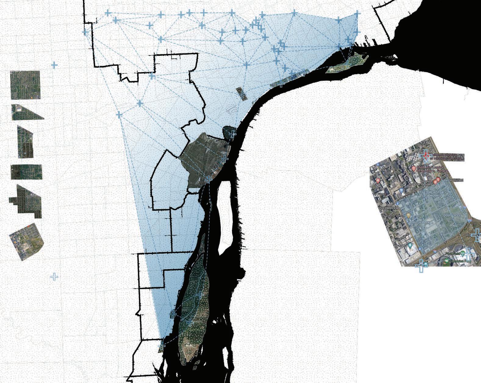 CO/CO is a co-work + co-live adaptive reuse housing development in Detroit’s LaSalle Gardens neighborhood. The project is situated in a low-density area right off Rosa Parks blvd. There is a park and school to the north, a commercial boulevard to the east, and houses to the south and west. Vacant lots in the surrounding neighborhood, formerly single-family homes, create voids in the urban fabric. However, new and proposed developments in the area are gradually re-densifying the community by adding new and renovated single and multifamily housing. There are other existing buildings on site: an abandoned church, an old steam tunnel being converted into a cafe, and two residential buildings.