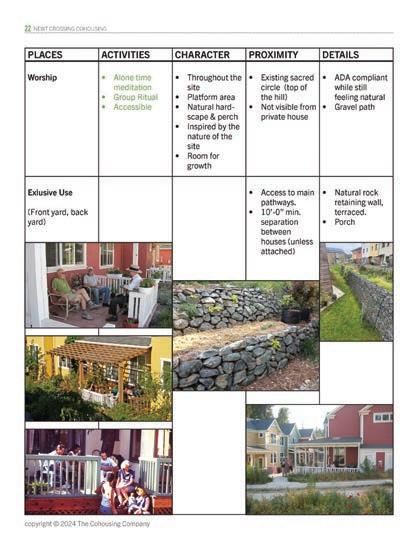 Eight households are developing cohousing on a 17.05acre site just outside of Port Townsend. Despite being only 15 minutes away from downtown, the location is significantly wooded and rural, with only a narrow road as the main access point. There are three significant existing structures on the site, in addition to some smaller built and landscaped elements. There are also several existing paths and access roads for amenities already on the site. Some other challenges in designing the site revolve around considerable changes in the topography, and a 60’ right-ofway offset from the access road. The above are the various obstacles and opportunities that will help inform a site plan that meets the needs of its future residents.