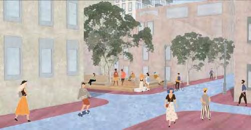 In the first Strategy, we envision transforming the street into a carfree public space for recreation. Four strategies guide this change.
