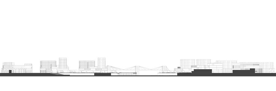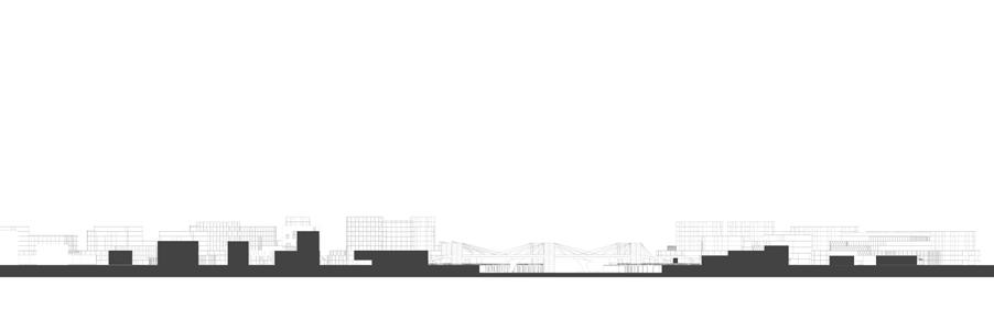 The different neighborhoods unfold along the river according to their function perpendicular to the river bank, and then present different forms in the profile. The density of the residential area is relatively high. The waterfront harbor and the walkway have the lowest density, and the building height difference is small. resettlement area The unit repetition is high, and the profile form is more neat. The density of commercial and office blocks is relatively moderate, and the profile pattern is rich. The profile also shows that the overall site favors a low to medium density block design, and the site is closely related to the canal, with a large number of water systems introduced to increase the hydrophilicity of the trail.