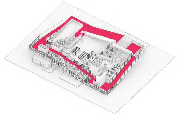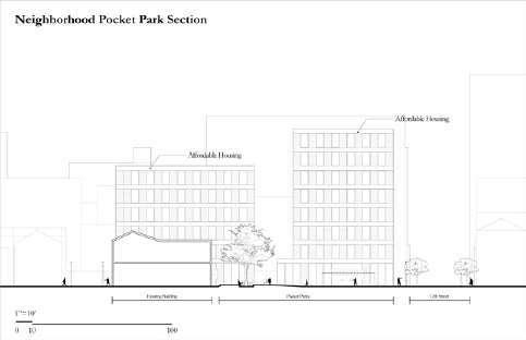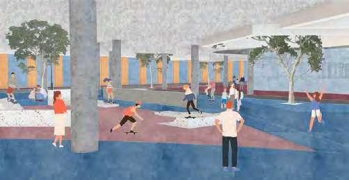 This proposal reconfigures the Convention Center by opening its interior spaces and incorporating community-oriented functions, creating a new model of spatial and social integration across divided neighborhoods. Additionally, through the design of linear parks, pocket parks, and community parks, the project enhances pedestrian experiences and fosters vibrant, inclusive public realms.