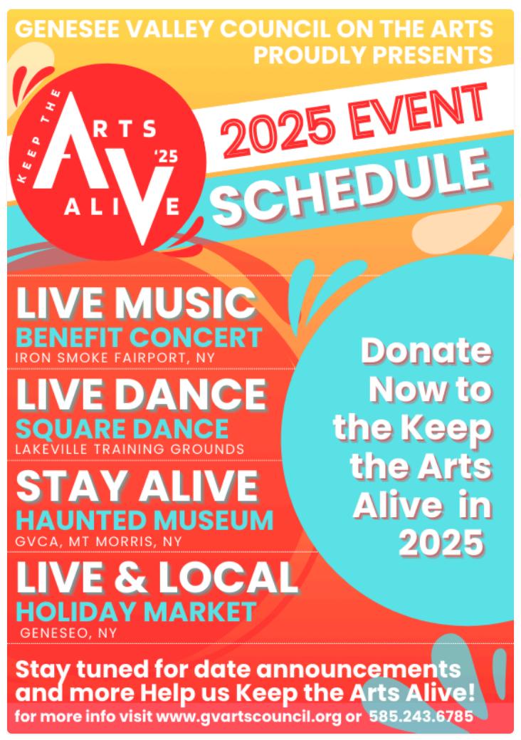 In 2025, Visit LivCo, the official tourism promotion agency for Livingston County, awarded Digital Marketing Grants (DMG) to 12 local businesses and organizations to drive tourism and economic growth throughout the year. The DMG program was a strategic initiative designed to provide tourism-generating festivals and programs with a lift in digital advertising, specifically targeting outof-county visitors to increase overnight stays. One of the program's largest recipients was the Genesee Valley Council on the Arts (GVCA), which utilized the funding to launch and promote their new 'Keep the Arts Alive' event series. This series successfully highlighted Livingston County’s cultural landscape, drawing new audiences from across the region.